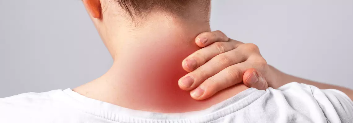 - Ból szyi. Pacjenci uskarżają się na dyskomfort, sztywność lub kłucie promieniujące do ramion i głowy.
