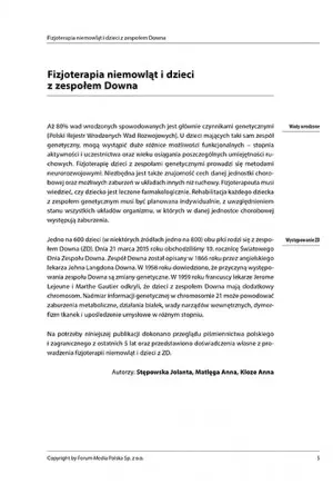 Dzięki elektronicznemu formatowi, zawarte w tym minibooku materiały można bez problemu przenosić i wyświetlać na ekranach różnej wielkości. Publikacja stanowi cenną pomoc w procesie fizjoterapii dzieci z zespołem Downa.