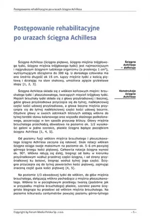 Celem uzyskania optymalizacji funkcji oraz siły ścięgna piętowego, poprzez przywrócenie jego długości i napięcia, stosuje się dwie metody postępowania leczniczego: zachowawczą i operacyjną. Obydwie metody mają racjonalne uzasadnienie i wybierane są w sposób indywidualny stosownie do warunków, jakie musi spełniać pacjent do operacji. Wybór metody leczenia wciąż jest przedmiotem kontrowersji [21, 22). Przy całkowitym przerwaniu ścięgna Achillesa leczeniem z wy" boru jest zazwyczaj metoda operacyjna z następowym unieruchomieniem przez 6 tygodni, w przypadkach szczególnych (rzadko) stasuje się także metodę zachowawczą w postaci gipsu na okres 6-8 tygodni [23]. Decyzję o leczeniu zachowawczym podejmuje się jedynie w przypadku niecałkowitych zerwań ścięgna, nieprzekraczających zdaniem niektórych autorów 1/2 obwodu ścięgna oraz jeśli dochodzi do zbliżenia końców ścięgna w zgięciu podeszwowym stopy do kąta 20°. W przypadkach kiedy pozostaje oddalenie końców ścięgna pomimo zgięcia podeszwowego, leczenie zachowawcze nie przynosi zamierzonych efektów, a wybierana metoda leczenia pozostaje operacja [22]. Leczenie wstępne polega na unieruchomieniu kończyny w ortezie lub szynie gipsowej podudziowej, w ustawieniu komfortowego zgięcia podeszwowego, stosowaniu zimnych kompresów, wyższym ustawieniu kończyny i rozpoczęciu poruszania się za pomocą kul [21, 24, 25). Do niedawna inną metodą leczenia wstępnego by to zastosowanie opatrunku gipsowego stopowo udowego z ustawieniem stopy w zgięciu podeszwowym lub zastosowanie gipsu okrężnego z ustawieniem końskim stopy i zgięciem w stawie kolanowym [24, 25).