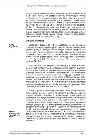 Leczenie w HD jest wyłącznie objawowe i można je podzielić na farmakoterapię i leczenie niefarmakologiczne. Leczenie powinno się koncentrować na zmniejszeniu objawów, niepełnosprawności pacjenta i poprawie jakości życia. Farmakoterapia polega na leczeniu objawowym: ruchów mimowolnych, hipokinezy i bradykinezji, zaburzeń nastroju i zachowania. Leczenie niefarmakologiczne powinno być dobierane indywidualnie do aktualnych potrzeb osoby z HD. Leczenie niefarmakologiczne jest wielodyscyplinarne i obejmuje: psychoterapię i wsparcie psychologiczne, fizjoterapie, terapię zajęciową i mowy, porady dotyczące odpowiedniej diety, edukację, pomoc pracownika socjalnego (3]. Profesjonalna, ciagla opieka zdrowotna może pozytywnie wpływać na zmniejszenie stopnia desperacji i depresji oraz może pomóc w utrzymaniu jakości życia [8].
