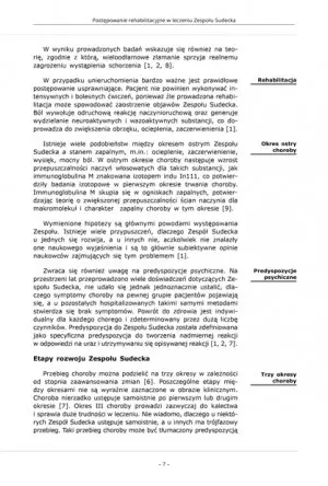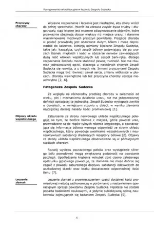 Leczenie Zespołu Sudecka charakteryzuje kompleksowość postępowania, obejmująca: farmakoterapię, fizykoterapię, kinezyterapię, a nawet psychoterapię. Postępowanie lecznicze dobierane jest odpowiednio do fazy, w której pacjent się znajduje [4, 22, 23), a przede wszystkim - co powinno być podstawą postępowania leczniczego - do aktualnych objawów chorobowych, które mogą przeplatać się z okresami choroby.