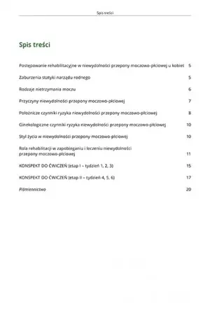 Dodatkowo otrzymasz konspekt do ćwiczeń przy niewydolności przepony moczowo-płciowej - rozpisany na etapy dla 6-tygodniowej rehabilitacji (wraz z pozycja wyjściową do ćwiczeń, ich sposobem wykonywania, ilością powtórzeń i zaleceniami).