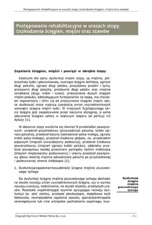 Za Dziakiem i Tayarą [4], istotną przyczyną zapalenia ścięgna mięśnia podeszwowego jest związana z wiekiem utrata elastyczności fizjologicznej jednostki mięśniowo-ścięgnistej mięśnia trójgłowego łydki. W wyniku wewnętrznego i zewnętrznego ucisku dochodzić może do narastającej anemizacji ścięgna, doprowadzającej do zmniejszenia elastyczności i rozciągliwości tkanki ścięgnistej, a w konsekwencji zmniejszenia wytrzymałości ścięgna na obciążenia [4].