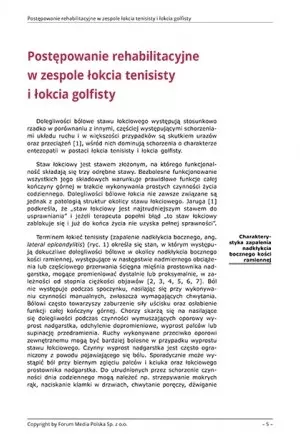 Postępowanie terapeutyczne dla łokcia tenisisty i łokcia golfisty obejmuje leczenie zachowawcze i chirurgiczne. Leczenie zachowawcze w większości przypadków daje dobre efekty i nie wymaga interwencji chirurgicznej. Proces postępowania fizjoterapeutyczne go pomaga zapobiec leczeniu operacyjnemu, a w sytuacji, kiedy interwencja chirurgiczna okazuje się niezbędna, jest czynnikiem przyśpieszającym powrót pacjenta do zdrowia. Program postępowania fizjoterapeutycznego powinien być dostosowany indywidualnie do odczuć chorego. Okres terapii uzależniony jest od czasu trwania dolegliwości i charakteru zmian degeneracyjnych w obrębie ścięgien [12, 20).