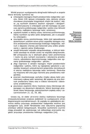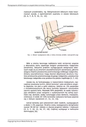 W diagnostyce łokcia tenisisty i łokcia golfisty istotną funkcję pełni badanie różnicowe odcinka szyjnego kręgosłupa. W łokciu tenisisty objawy należy zróżnicować m.in. z radikulopatią odcinka szyjnego kręgosłupa z poziomu C7/Th1 i zespołem kanału promieniowego. W łokciu golfisty niezbędne jest wykluczenie uszkodzenia UCL, niestabilności stawu oraz neuropatii nerwu łokciowego i dysfunkcji na poziomie C5/C6-C6/C7 [3, 7, 10, 12, 16, 23, 27).