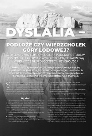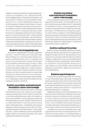 1| Wywiad w przypadku dziecka, oprócz oczywiście informacji na temat jego wieku i ogólnego rozwoju psychomotorycznego, powinien mocno opierać się na danych medycznych, takich jak: czynniki prenatalne i perinatalne, które mogłyby wpływać, np. na napięcie mięśniowe dziecka; stan zdrowia, w tym podatność na infekcje dróg oddechowych, migdałów oraz jamy ustnej; występujące współzaburzenia i deficyty, np. słuchu; dotyczące jedzenia i picia oraz ewentualnych trudności w tym zakresie. Wywiad dotyczący osoby dorosłej będzie opierał się przede wszystkim na danych medycznych oraz ewentualnych informacjach dotyczących wcześniejszych terapii. Warto też dopytać pacjenta, kiedy odczuwa największy dyskomfort w czasie mowienia oraz czy towarzyszą mu jakieś zaburzone funkcje, np. połykania lub gryzienia.
