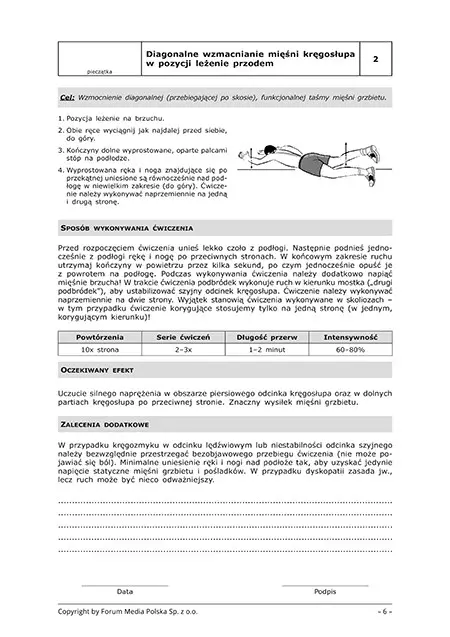 2. Diagonalne wzmacnianie mięśni kręgosłupa w pozycji leżenie przodem 6