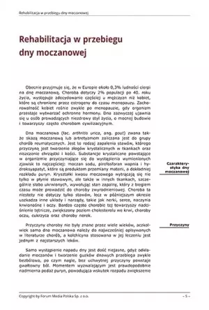 W dnie moczanowej najczęściej napady rozpoczynają się od stawu śródstopno-paliczkowego palucha, przewlekłe bóle są bardzo uciążliwe dla pacjenta, dlatego ćwiczenia tych stawów rozpoczyna się od ćwiczeń biernych i czynnych w pełnym zakresie ruchu, stopniowo przechodząc do ćwiczeń oporowych, np. wspięcia na palce.