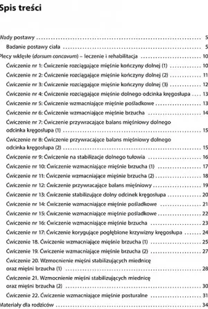 Publikacja łączy w sobie teorię z praktyką: dostarcza zarówno kompleksowe omówienie charakterystyki i diagnostyki pleców wklęsłych, ale także zestaw 24 gotowych przykładów ćwiczeń oraz zalecenia fizjoterapeutyczne dla pacjentów z plecami wklęsłymi. W szczegółowych opisach uwzględniono cel ćwiczeń, pozycję wyjściową, sposób wykonania, liczbę powtórzeń oraz wskazówki. Każde z ćwiczeń opatrzono ponadto pomocnymi zdjęciami. Dzięki tym precyzyjnym instrukcjom, ćwiczenia mogą wykonywać samodzielnie w domu sami pacjenci - podczas realizacji postępowania fizjoterapeutyczego pozostaje jedynie zadbać o systematyczność i umiar.